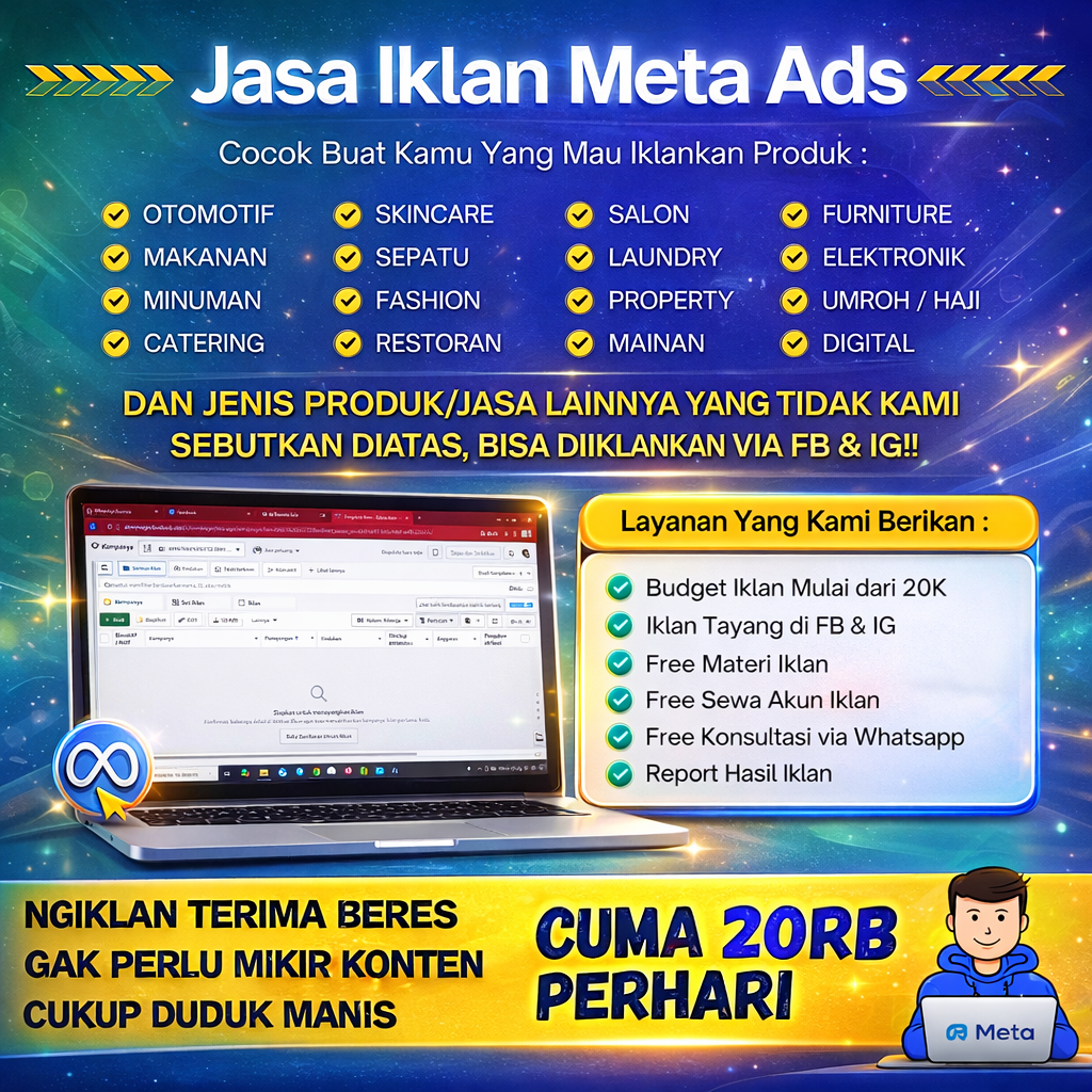 Kami siap membantu kamu untuk meningkatkan penjualan dan mempromosikan produkmu via iklan Meta Ads (FB & IG), Google Ads dan Tiktok Ads dengan biaya terjangkau.