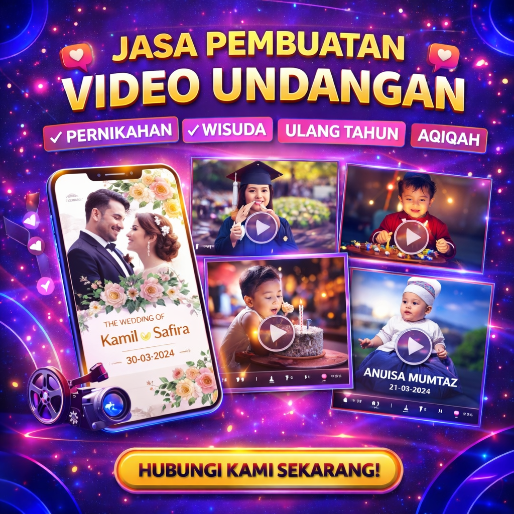 Jadikan momen spesial dalam hidupmu untuk membuat undangan video nikah, wisuda, ulang tahun, aqiqah dan video ucapan Ramadhan dan Idul Fitri/Adha.