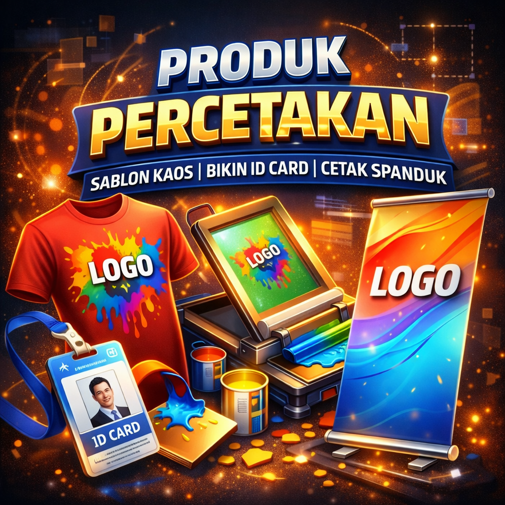 Butuh percetakan seperti pembuatan Kaos Sablon, Spanduk, XBanner, Piagam, Mug, Sertfikat, Piala, ID Card, Kartu Nama, Buku Yassin dan percetakan lainnya. Percayakan semuanya kepada kami disini.