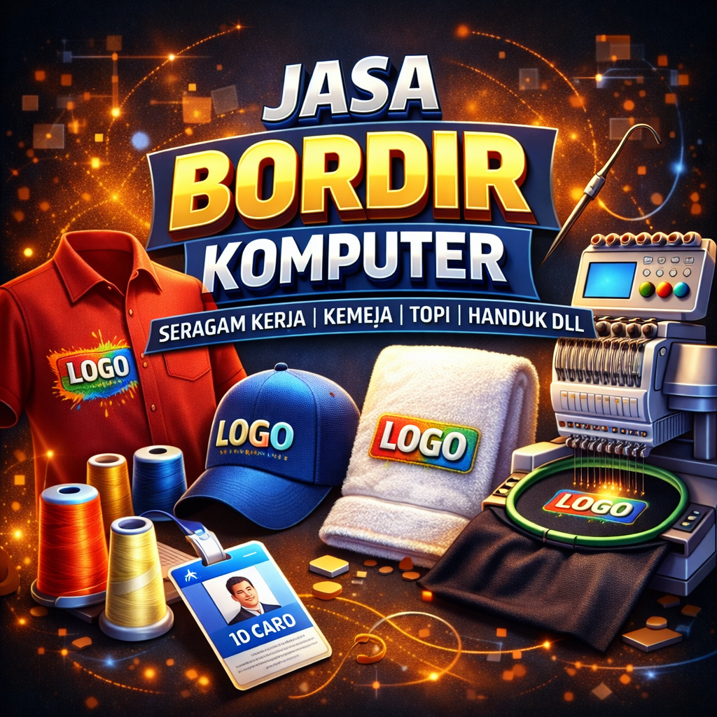 Menerima jasa bordir komputer untuk kemeja, seragam kantor, topi, handuk, tas dan bordir lainnya. Kami juga melayani orderan satuan atau partai besar untuk kebutuhan pemerintah, perusahaan dll.